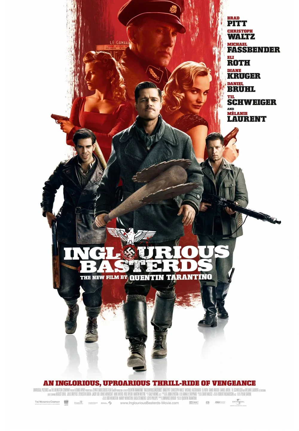이에 맞서는 '알도 레인' 역의 브래드 피트 역시 특유의 미국 남부 사투리와 능청스러운 표정 연기로 거칠고 무자비한 리더의 모습을 유쾌하게 소화해 냈습니다. 그의 익살스러우면서도 묵직한 카리스마는 극의 중심을 단단히 잡아줍니다. 또한, 복수의 화신으로 변모하는 쇼산나 역의 멜라니 로랑과 비밀 요원 브리짓 역의 다이앤 크루거 등 매력적인 여성 캐릭터들의 활약 역시 극의 긴장감을 팽팽하게 더하며 빈틈없는 완벽한 연기 앙상블을 완성했습니다.